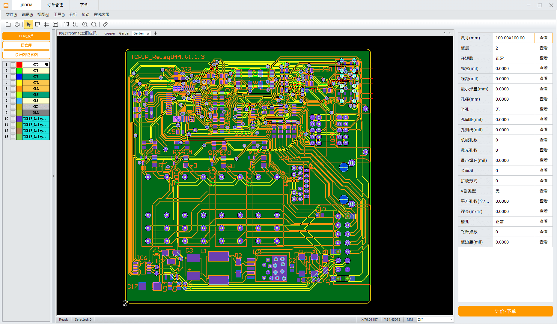 实时监视,研发更加合理,一键导入支持Gerber、Protel、Altium、PADS、cam350等格式的文件
